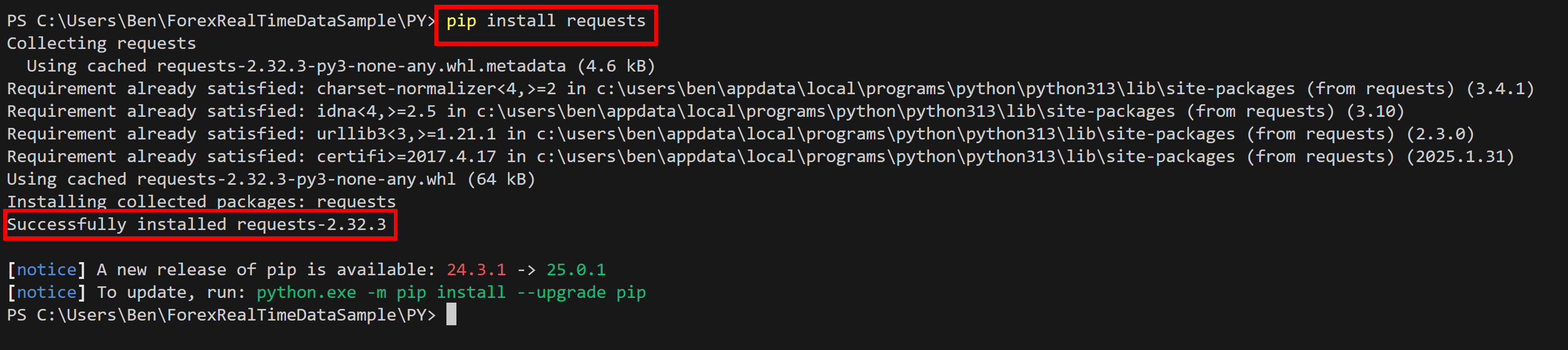 输入pip install requests ,按回车,等待 requests 库安装成功