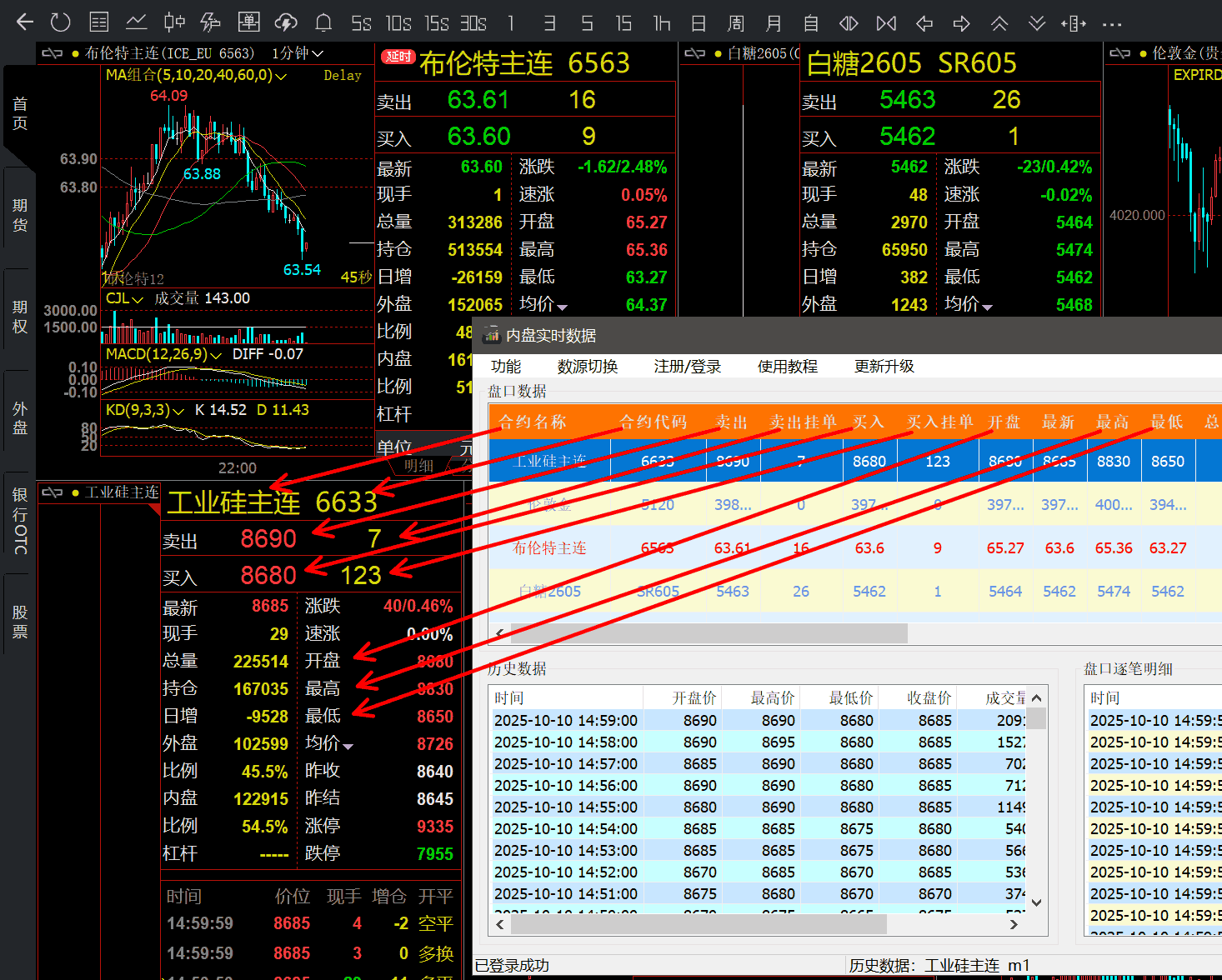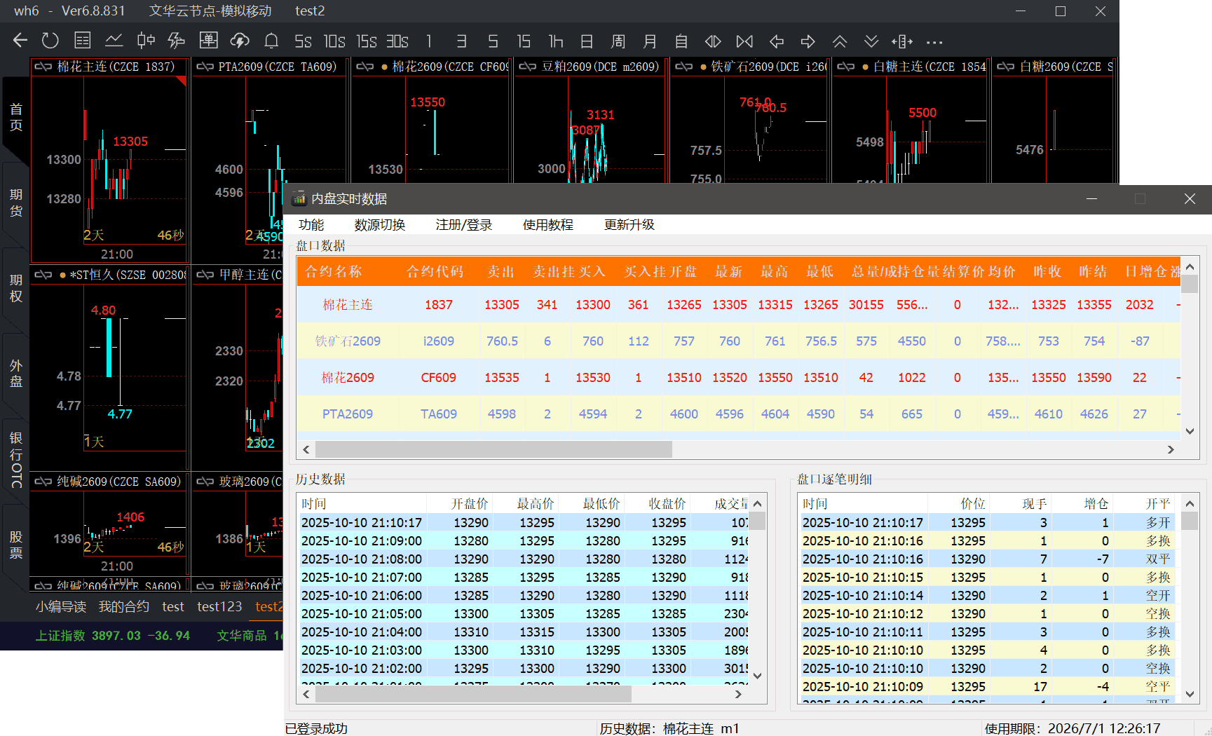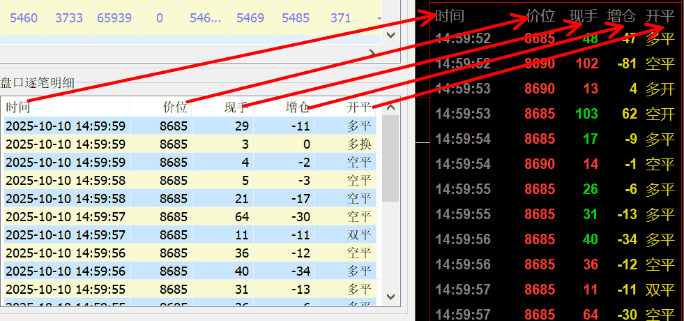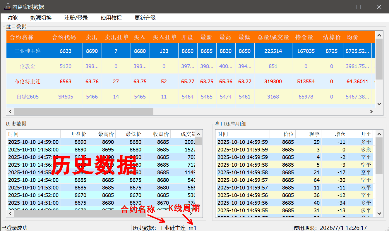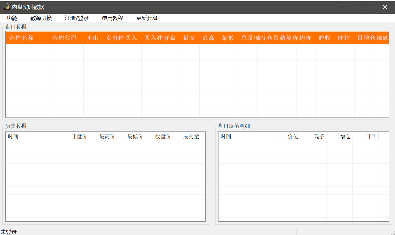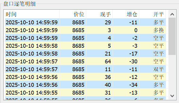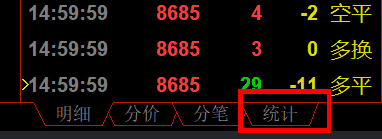 点击任意合约,即显示该品种的实时逐笔数据,这里的历史数据不会自动更新,需要查看最新的历史数据请点击相应品种。