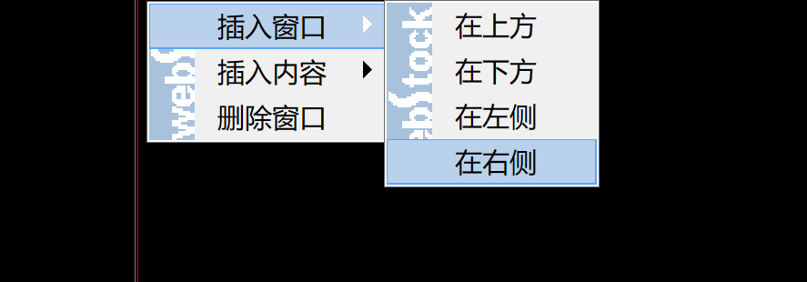 在新分隔出的窗口框中再次选择 插入窗口 – 在右侧