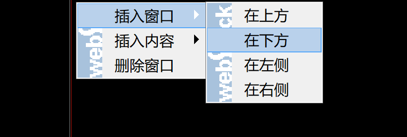在第三个分隔出的窗口框中选择 插入窗口 – 在下方
