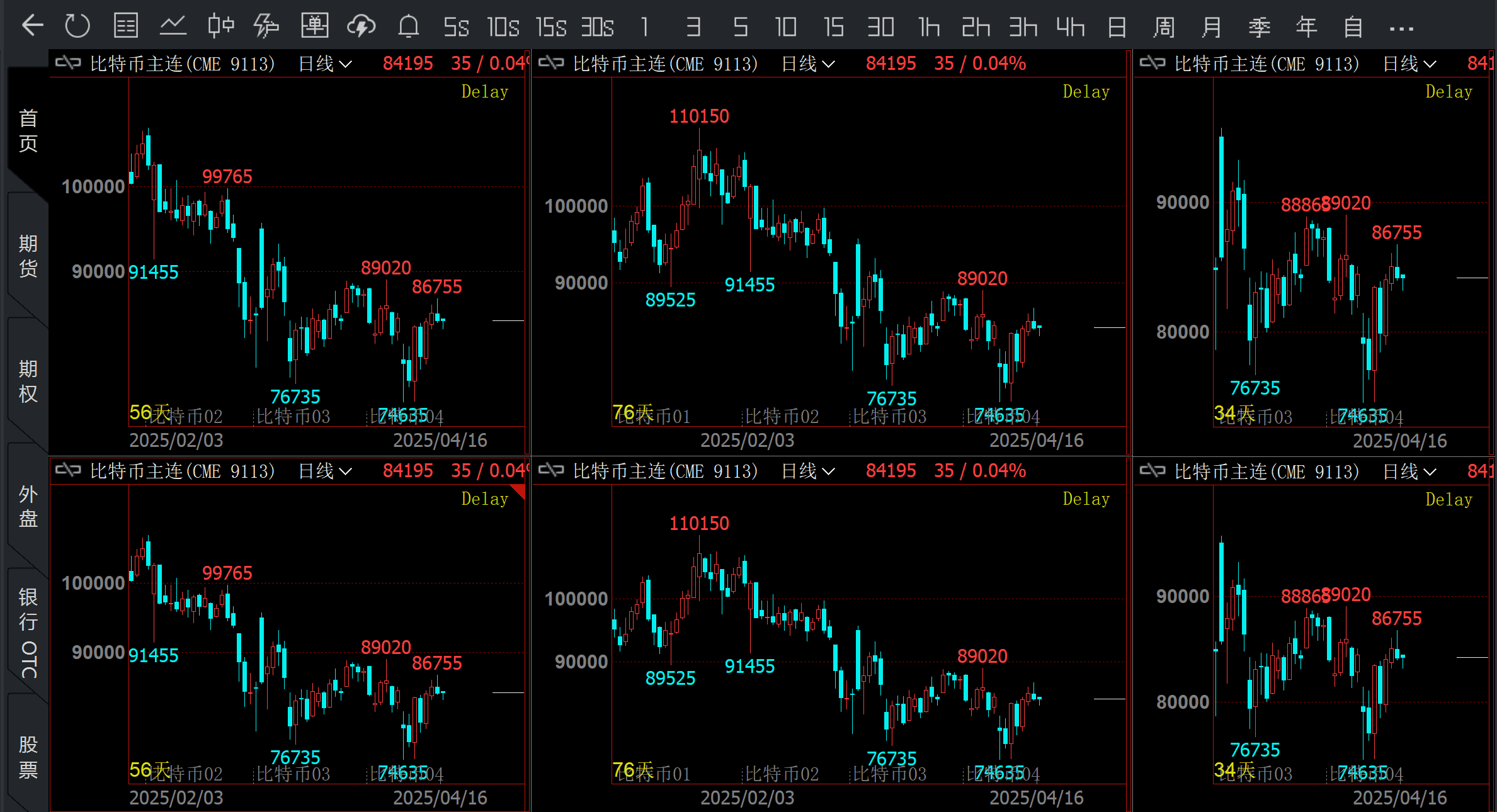 全部插入K线图表后会得到如下图所示