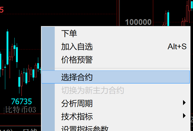 在图表中点击右键选择 选择合约