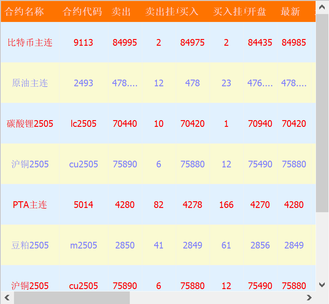 正常已启动WH6程序,并且当前WH6的界面为刚刚自定义页面的界面,此时点击加载数据按钮会在工具中显示自定义页面中全部合约的实时数据