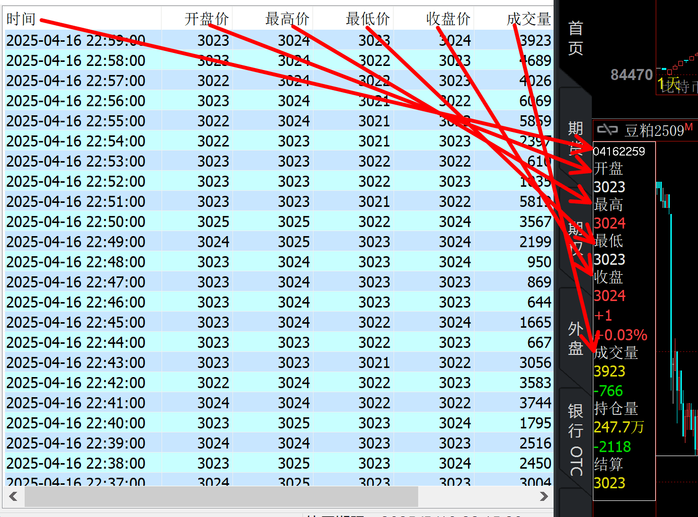 历史数据中的各项数据对应如下图
