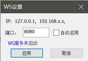如勾选了自动启用,以后启动工具则会自动启用WS服务并在状态栏中有相应提示