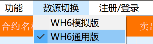 点击菜单 功能 – 数源切换 可切换WH6模拟版或通用版,需重新点击加载数据才能正常加载切换后的版本数据