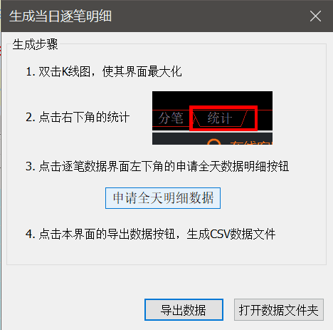 弹出 生成当日逐笔数据明细 的窗口