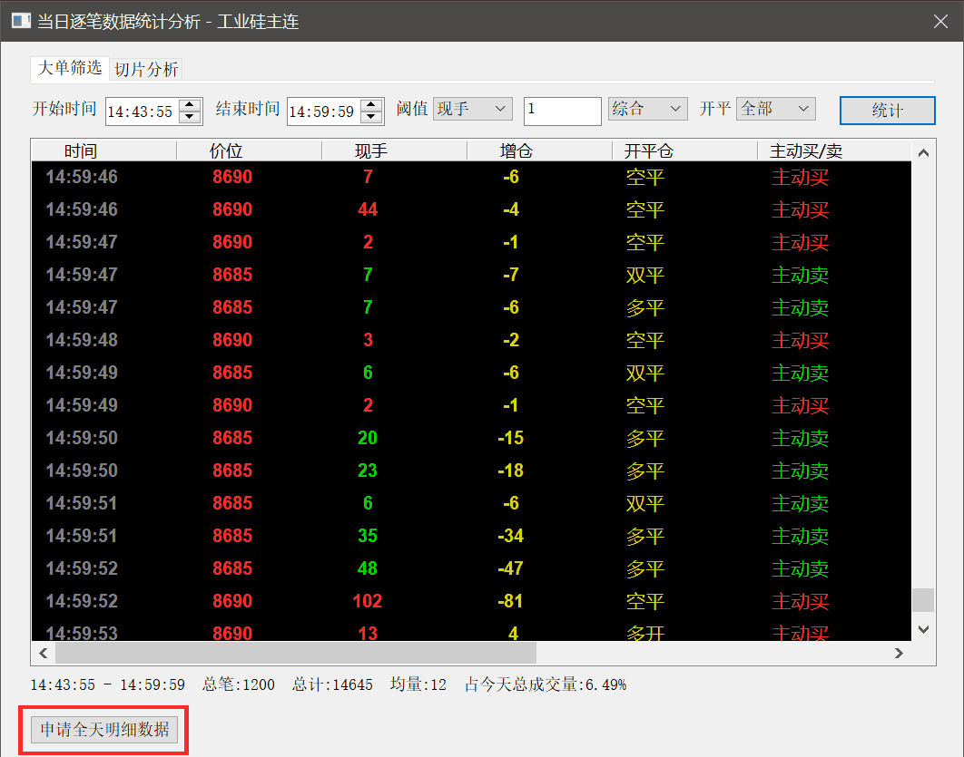 点击弹出窗口左下角的 申请全天明细数据 按钮