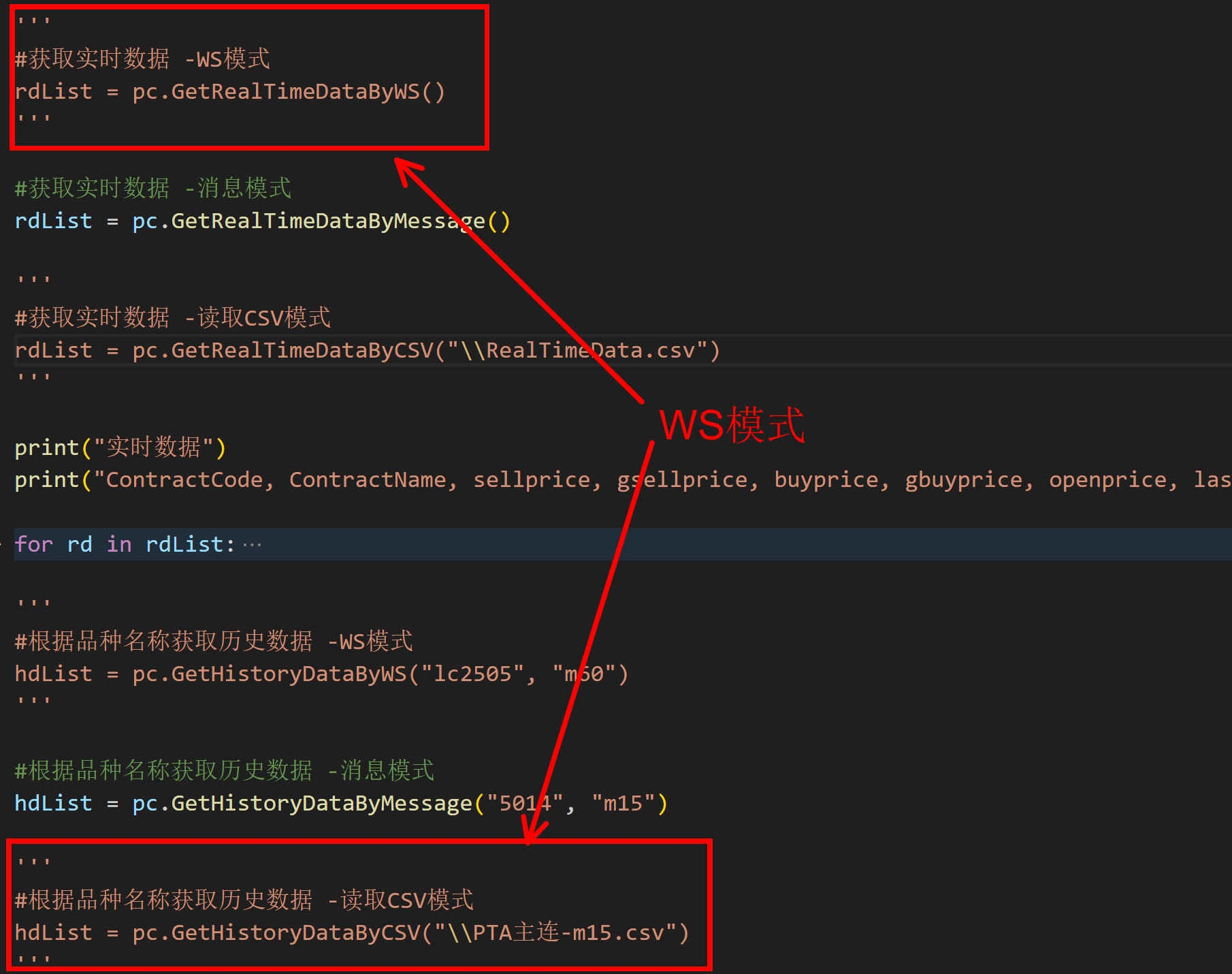 可以通过读取数据文件,发送消息,WS这三种方式获取相应的数据,现已有C++,C#,Python编写好的的代码与类库源码可供参考。